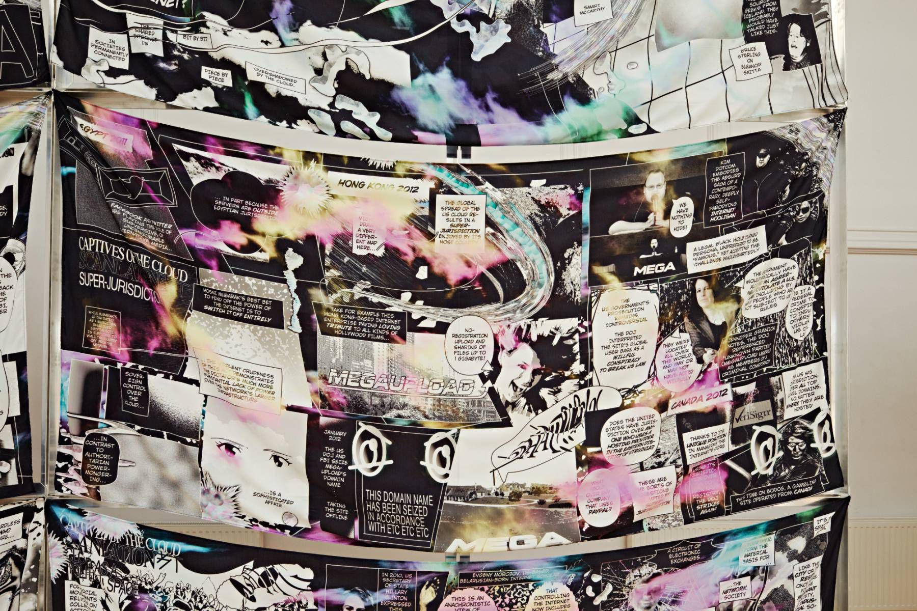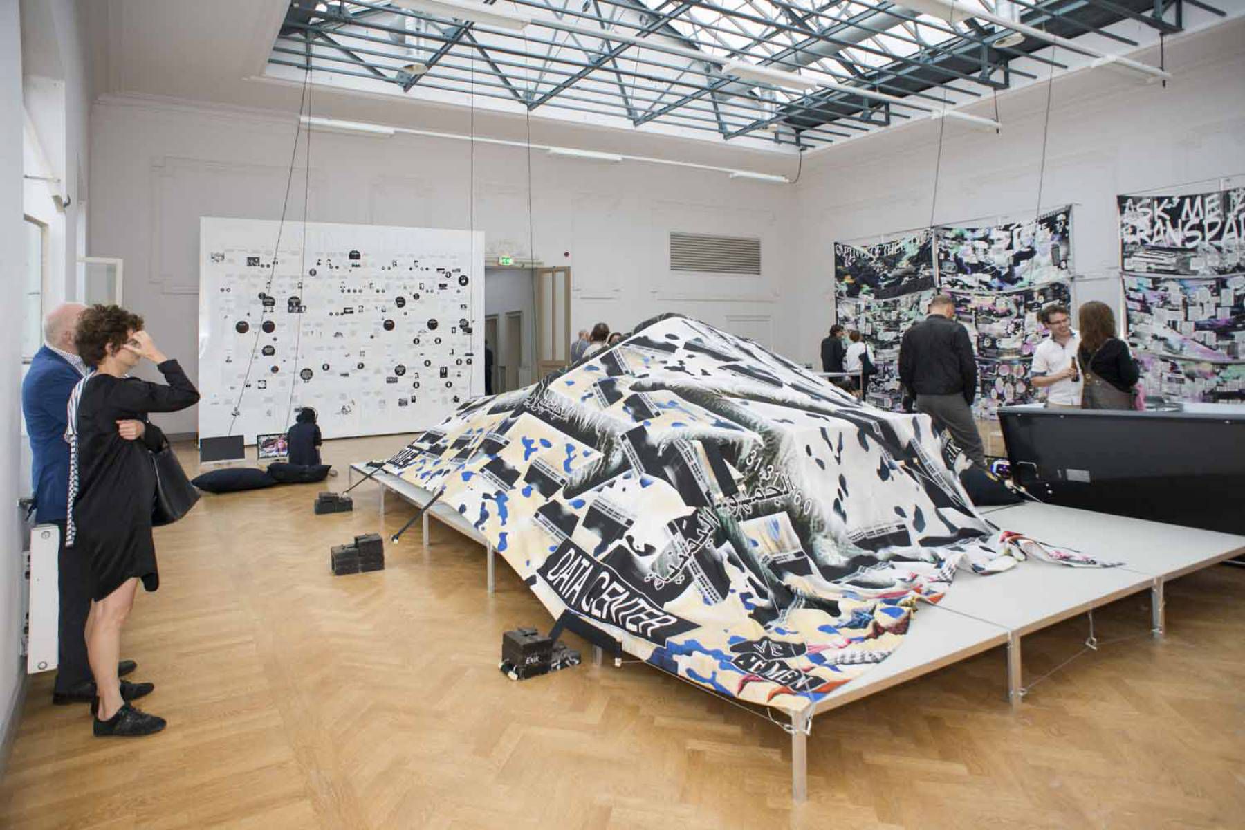 Black Transparency is an exhibition of Metahaven's research and design work, translated by them into visual proposals, infographics, garments, a short film and video interviews with internet activists and legal experts about the ambiguity, contradictions, and the potential around the production and distribution of information.